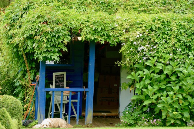The plant growth removed from the shed has provided us with wonderfully acidic humus, also, about 3 inches of material removed from the shed roof, full of pine needles, has been spread underneath the rhododendrons nearby. The plants will regenerate and look young and fresh, the tea shed will dry out and we’ll be able to repaint it cobalt blue. Hopefully, the garden will look its best when it is opened again to visitors this summer (August 8th-16th).